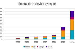 The number of robotaxis in service around the world is expected to more than double in 2026 to 18,500, according to Bloomberg New Energy Finance (BNEF).
