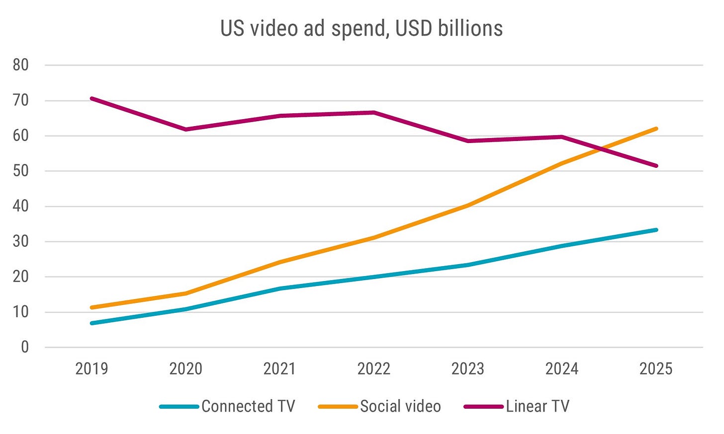During yesterday’s Super Bowl television broadcast, advertisers spent an estimated USD 875 million dollars, up 9% from the previous year. Over the last ten years, the price of purchasing a 30-second advertising slot during the Super Bowl rose 88% to USD 8 million while viewership of the match rose 12% to 128 million. The relative success of the Super Bowl broadcast as an advertising medium continues to run counter to industry trends. As more options have emerged, including streaming services like Netflix and free platforms from YouTube to TikTok, viewers have spent increasingly less time watching traditional television networks on broadcast and cable. As a result, over the last five years, traditional television ad revenues have fallen 17% while revenue from video ads placed on social networks rose 300%.